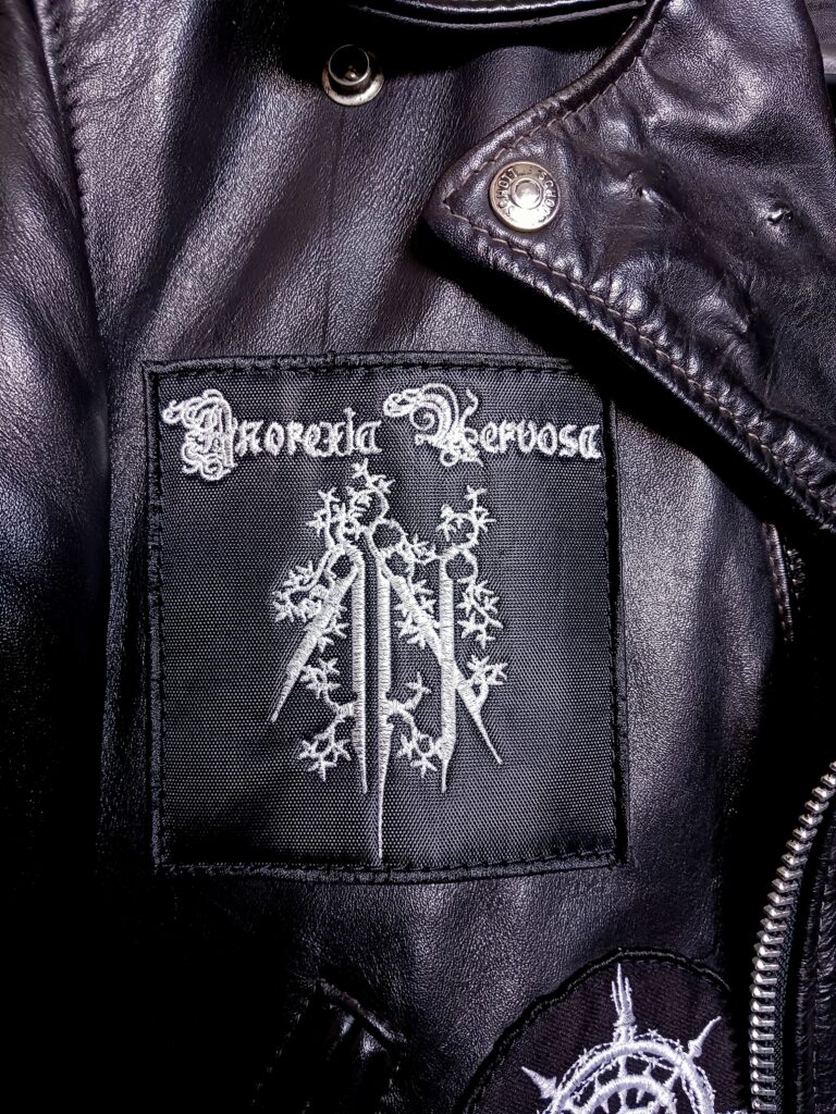Sur la poitrine, j’y ai fait apposer un patch d’Anorexia Nervosa (France), groupe de black metal symphonique, phare de la scène black française des années 2000, avec son style romantico-nihiliste, ses blasts et la voix unique du bouillonnant Rose Hreidmarr, que l’on aime ou que l’on déteste. Je n’ai jamais vu personne dans un entre-deux lorsqu’il s’exprimait sur lui. Des avis souvent très tranchés, influencés par d’autres aspects que l’œuvre musicale, ce que je trouve dommage et assez sans intérêt. C’est l’un de mes groupes préférés, ça le restera, et je l’écouterai toujours !